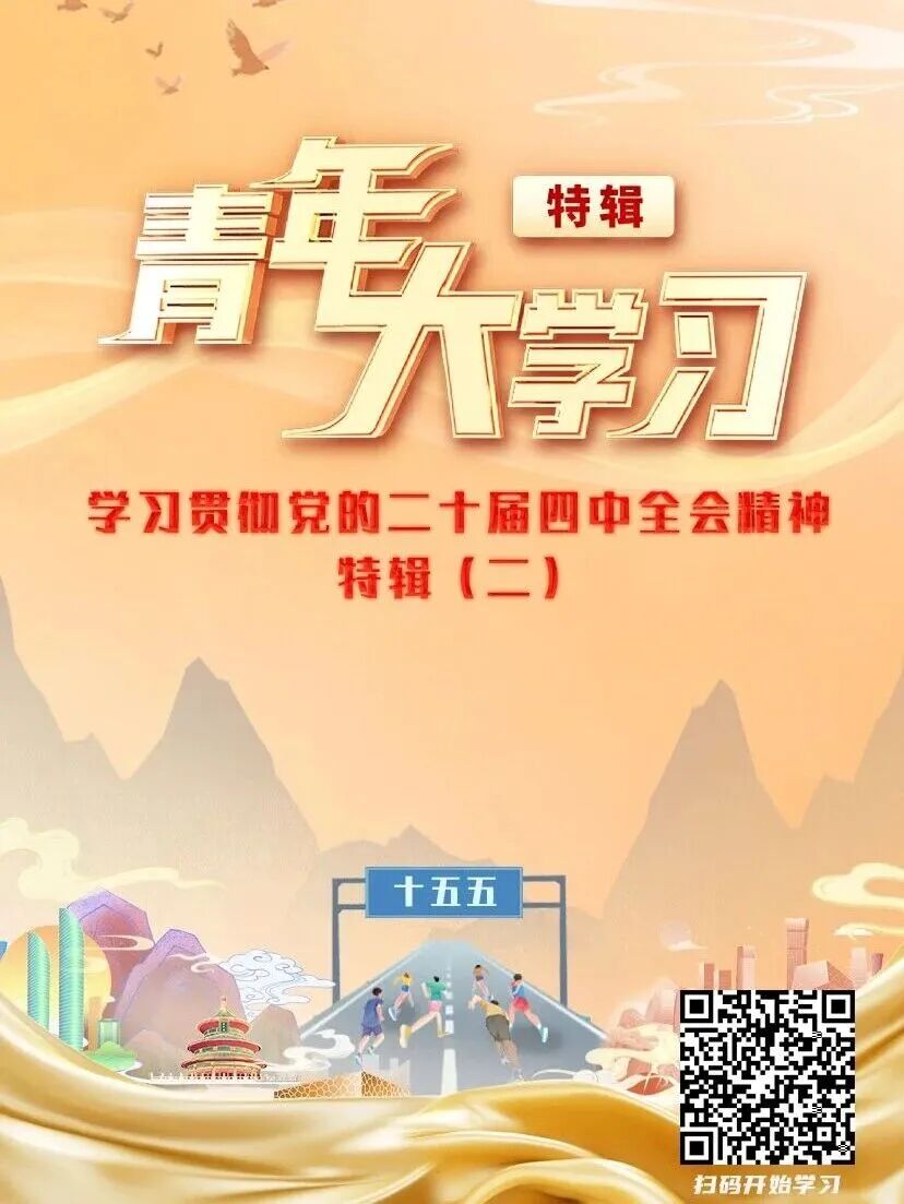 征程万里风正劲,重任千钧再扬帆。站在“十四五”收官与“十五五”开局的交汇点,让我们在学习中汲取力量,以青春之我投身现代化建设,让全会描绘的蓝图在实干中变为现实!为此我院持续学习“学习贯彻党的二十届四中全会精神特辑”系列团课。本期青年大学习将通过鲜活场景,带青年感受国家发展脉搏、找准奋进坐标。