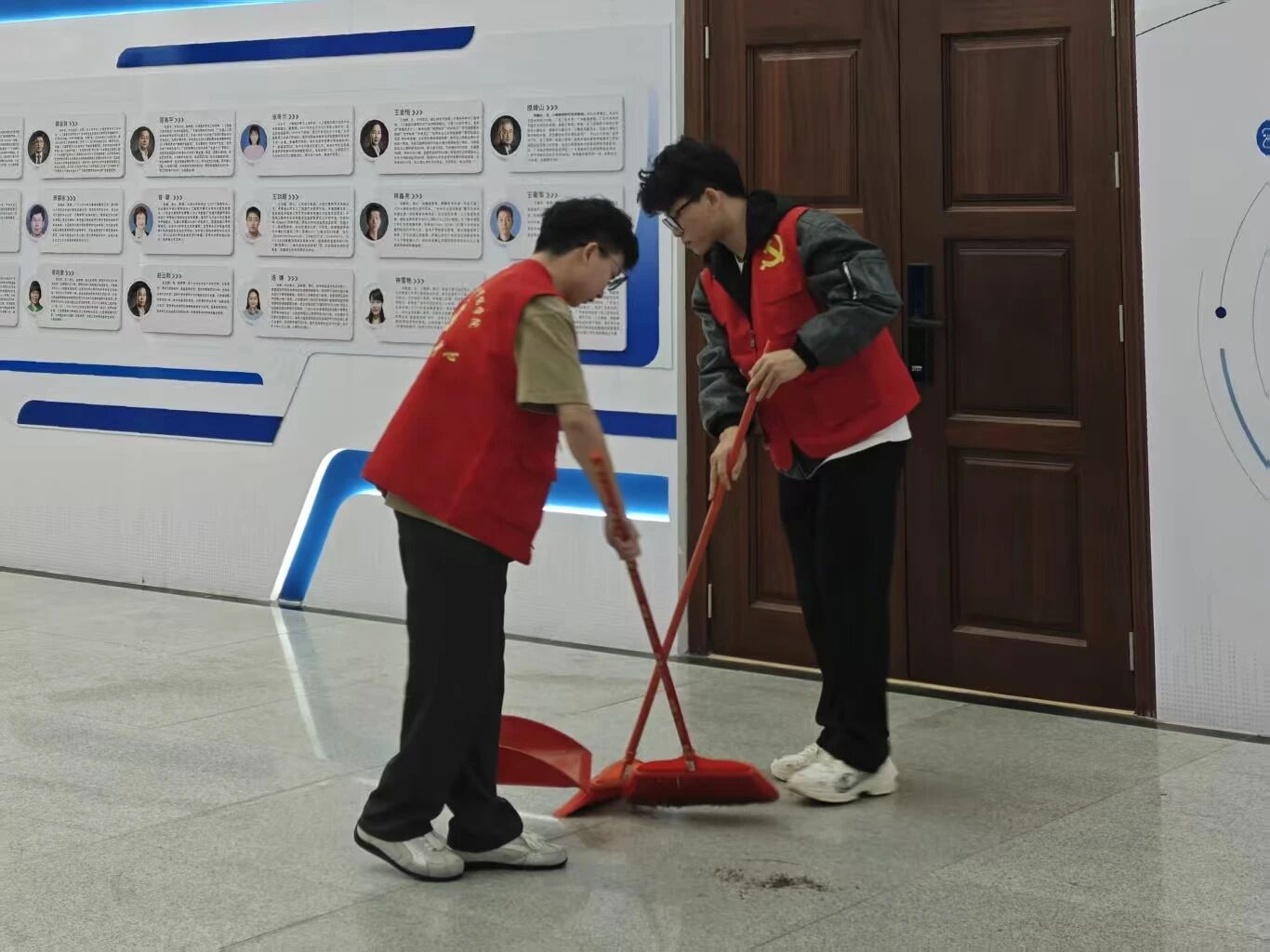 近日,人工智能学院学生党支部组织多名学生志愿者于四号、五号教学楼开展爱国卫生运动。志愿者们通过清洁走廊等实践活动,将党的二十届四中全会精神转化为服务师生的具体行动。