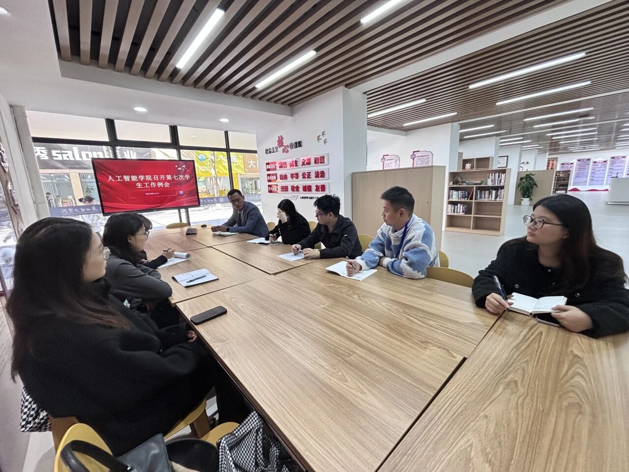为切实筑牢学生安全防护网,扎实推进学生管理服务工作提质增效,近日,人工智能学院于一站式学生第一社区活动室召开第七次学生工作例会。学院党总支副书记李顺主持会议,全体辅导员参会,聚焦学生人身安全、电信诈骗防范等核心议题,细化工作部署、凝聚育人共识。