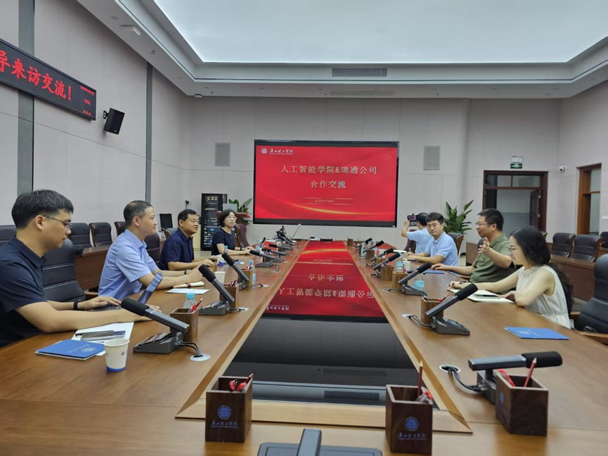 9月19日,东方瑞通公司一行到访我院,就课证融合、项目化课程建设、共研产品开发及产业化发展等议题开展深度交流,我院院长王煜林、数据科学与大数据技术系副主任陈智勇、软件工程系主任助理李彬、教务员廖琳琳出席会议,企业方东方瑞通公司覃艳丽经理、广州分公司李伟阶、中锐网络产教融合区域总监杨烨参与交流。