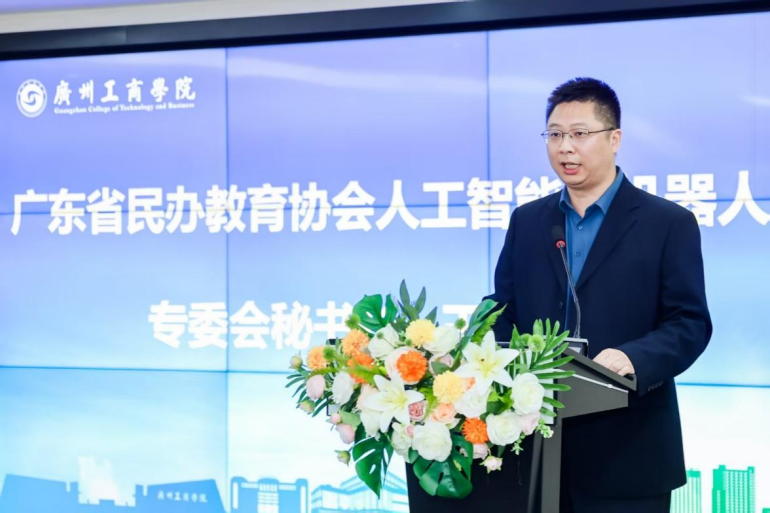 本次研修班在广东省民办教育协会指导下,由人工智能与机器人专委会主办、广州工商学院承办,吸引了来自全省30余所民办高校的150余名教师参与。在开班仪式上,广东省民办教育协会人工智能与机器人专委会秘书长、我院院长王煜林教授与广州工商学院副校长易露霞教授等领导共同出席。王煜林秘书长代表专委会致辞。