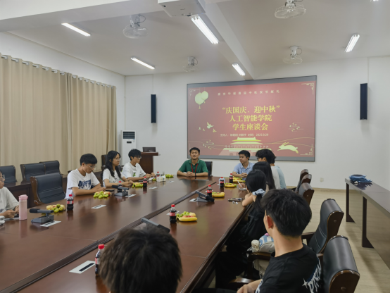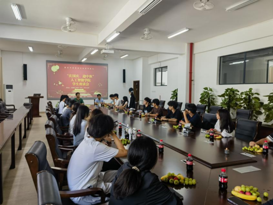 9 月 29 日,广州理工学院人工智能学院在惠州校区行政楼 203 教室举办 “庆国庆奋进新征程,迎中秋共话同心圆” 主题座谈会,由陈朝阳、刘振宇两位老师共同主持,师生齐聚一堂,共庆双节、共话成长。