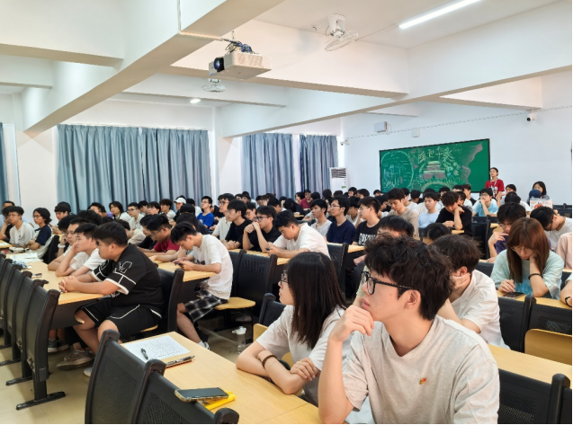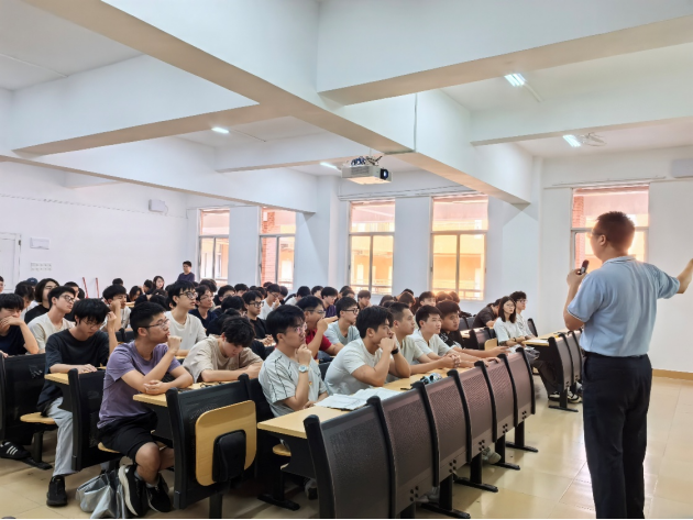 课程开始,王煜林院长从发展历程、架构、师资、实验室四方面介绍了学院概况,详细阐述了以党建为引领,构建“党建+育人+科研+服务”的一体化格局,以及创新“六融合”的应用型人才培养体系。