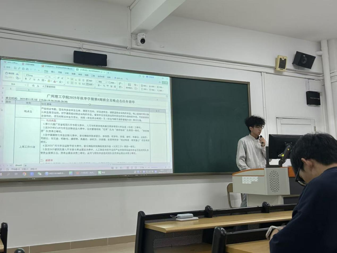 为全面贯彻落实学校工作部署,深入推进学风建设,营造勤奋严谨、求实创新的学习氛围,同时切实加强校园安全教育,广州理工学院人工智能学院各班级于2025年11月2日组织召开第8周主题班会。本次班会以"强化学风建设,提升学习效能"为主线,以防范电信网络诈骗为校园安全教育工作的重要内容,系统部署各项工作。