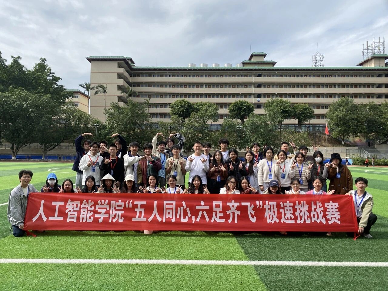 赛场落幕,掌声犹热,绑带虽解却系紧了心的距离;我院学子肩搭肩、汗汇汗,用同一节拍把“我”踏成“我们”,让五人六足的青春故事化作最燃的团结勋章,在绿茵上刻下协作的永恒注脚!