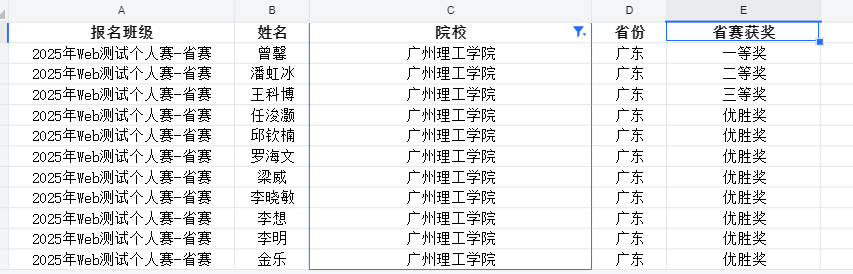 近日,2025年全国大学生软件测试大赛省赛结果揭晓,广州理工学院人工智能学院参赛团队表现优异,16名学子共斩获1项一等奖、2项二等奖、1项三等奖及10项优胜奖。其中,曾馨同学以省赛一等奖的优异成绩晋级总决赛,潘虹冰、朱定基两位同学获二等奖并同步晋级总决赛,三人将代表学校于12月6日至7日赴南京大学鼓楼校区与金陵科技学院江宁校区参加全国总决赛。