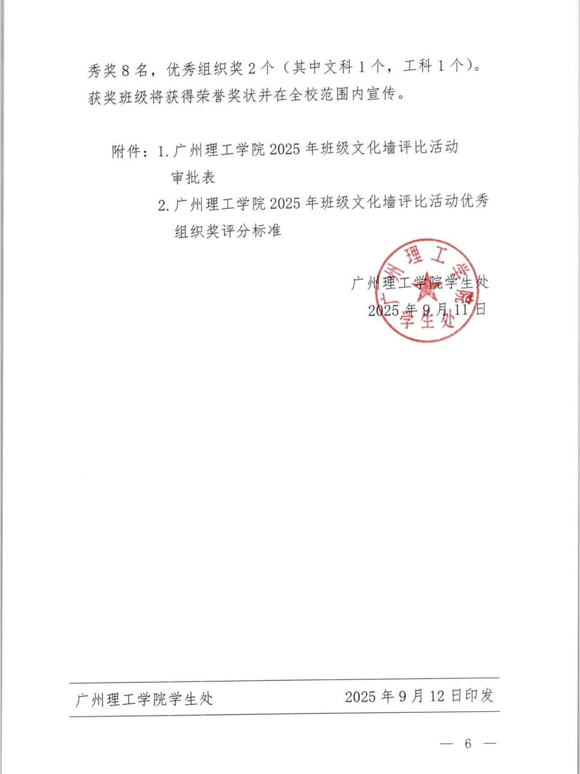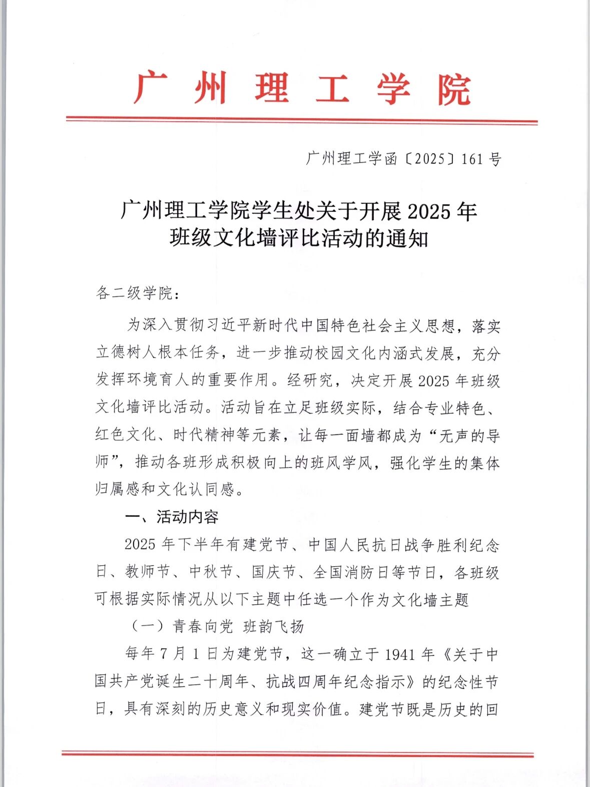 广州理工学院学生处关于开展2025年班级文化墙评比活动的通知