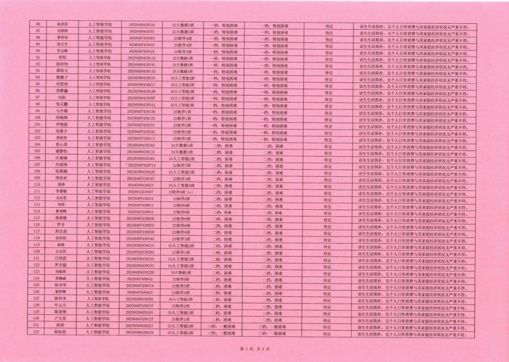 3.公示结束后,学院将报送学生资助中心再次审核确认,最终认定等级以学校结果为准。