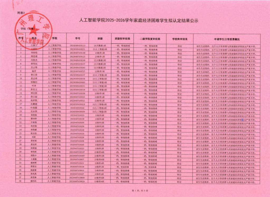 根据《关于做好2025-2026学年家庭经济困难学生认定工作通知》(广州理工学助函〔2025〕10号)等文件精神,我院积极开展家庭经济困难学生的认定工作。经过学生本人自愿提出申请、班级评议小组评议、二级学院核定工作小组初审等程序,现将2025-2026学年秋季学期家庭经济困难学生认定的院级初审结果予以公示。