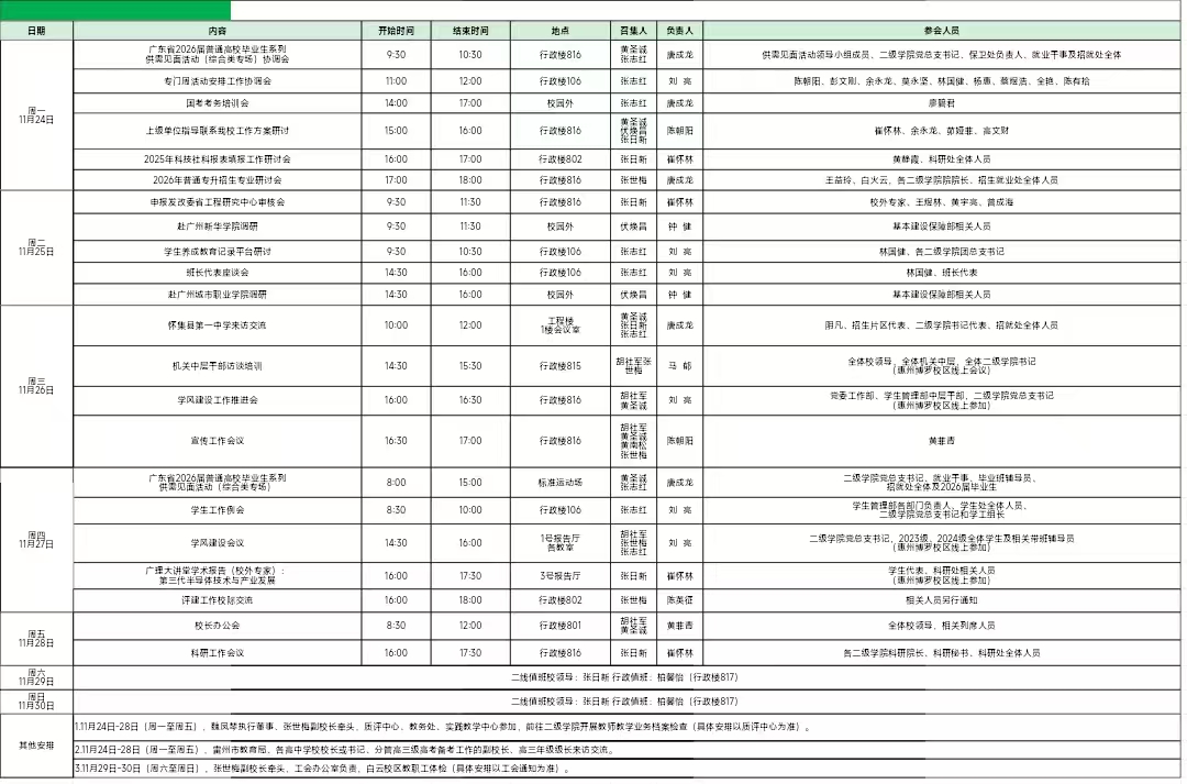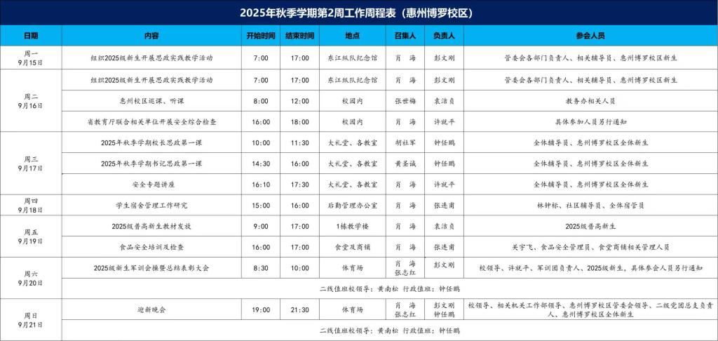 2025秋季12周程表